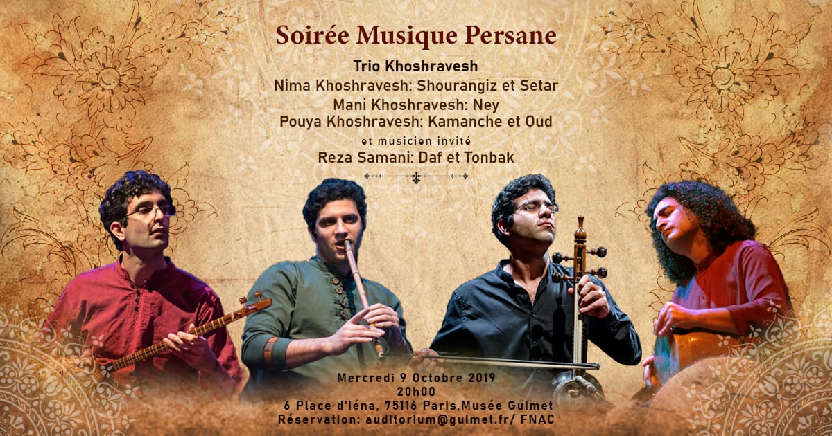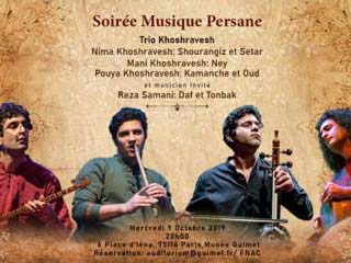 Programmation et organisation d’une soirée de concerts autour du Trio Khoshravesh. Composé de trois instrumentistes et chanteurs issus de grandes familles musiciennes du nord de l’Iran, il propose une création musicale teintée du foisonnement de sa culture traditionnelle, et d'inspirations artistiques glanées au gré des collaborations