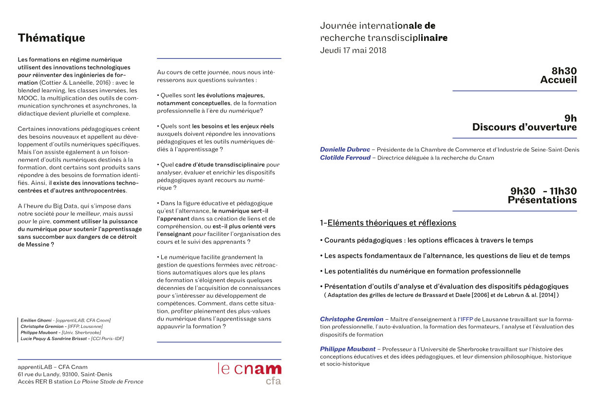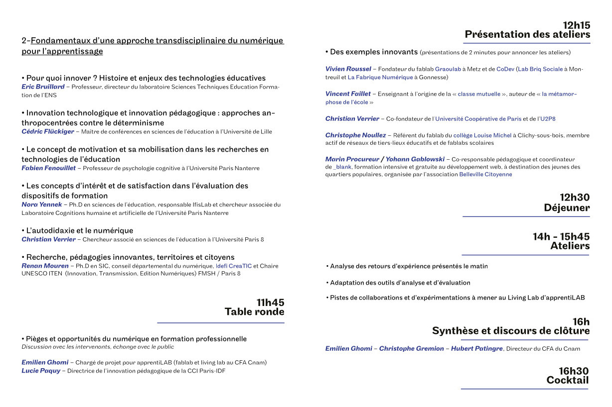 Journée internationale de recherche transdisciplinaire sur le thème "Innover pour quoi ? Pour qui ? Comment ?", avec des membres de l'IFFP de Lausanne, des Universités de Sherbrooke, Nanterre, Lille, Paris 8, de l'IfisLab, de l'ENS, de l'Université coopérative de Paris, des Chambres de Commerce et d’Industrie de Paris et de Seine-Saint-Denis, ainsi que les porteurs des projets Belleville Citoyenne et CoDev