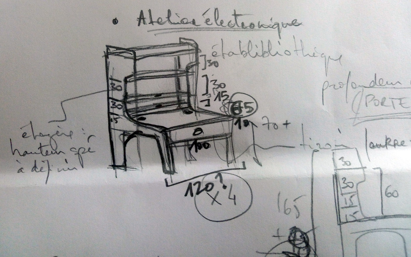 A côté de ma participation aux activités du lieu, j'y ai monté un "laboratoire d'expérimentations technico-artistiques" pour accueillir des sessions de création en arts numériques et sensibiliser les artistes fréquentant le lieu aux moyens technologiques à disposition et au "Do-It-Yourself"